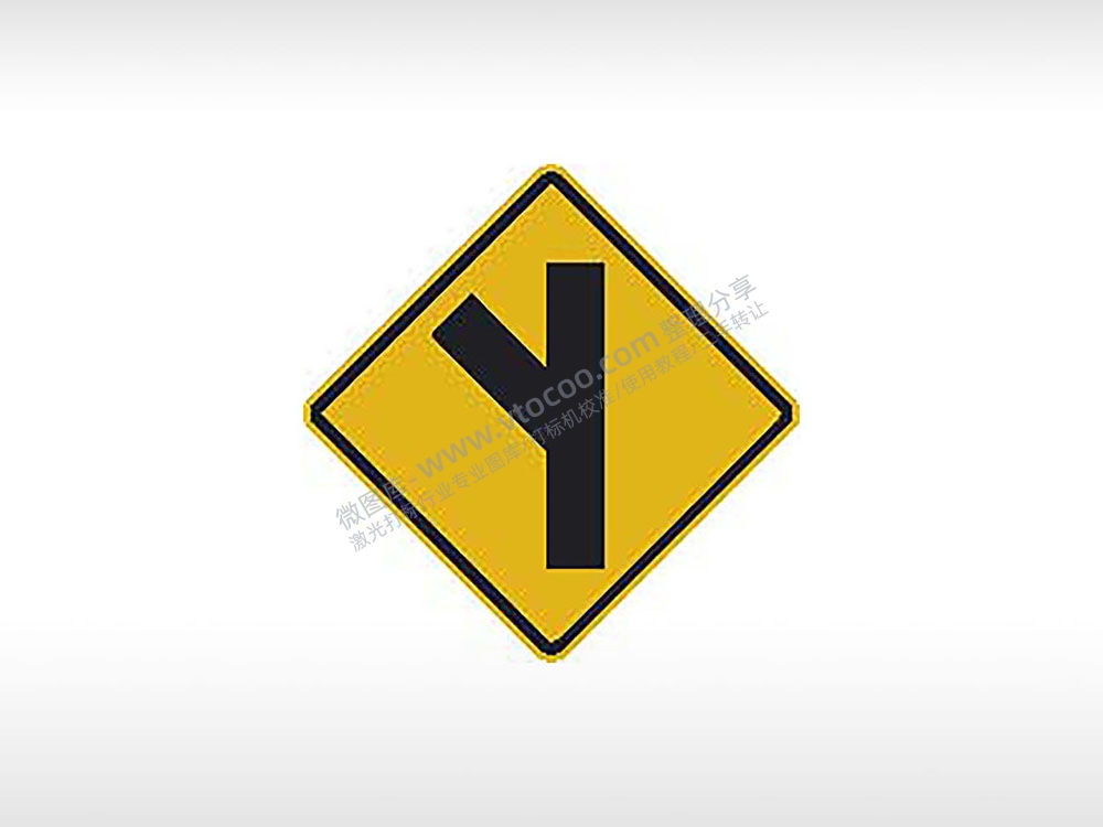 左分岔路口交通标志公共标志AI8.0格式激光打标文件通用矢量图
