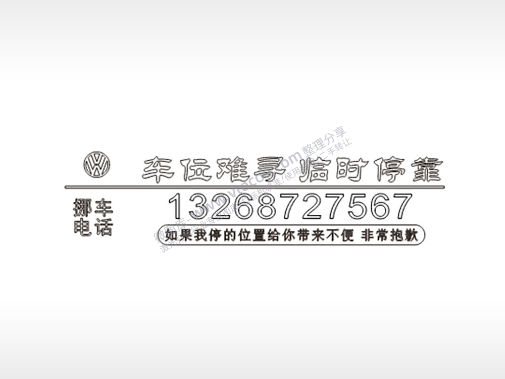 车位难寻临时停靠挪车电话PLT格式激光打标文件通用矢量图