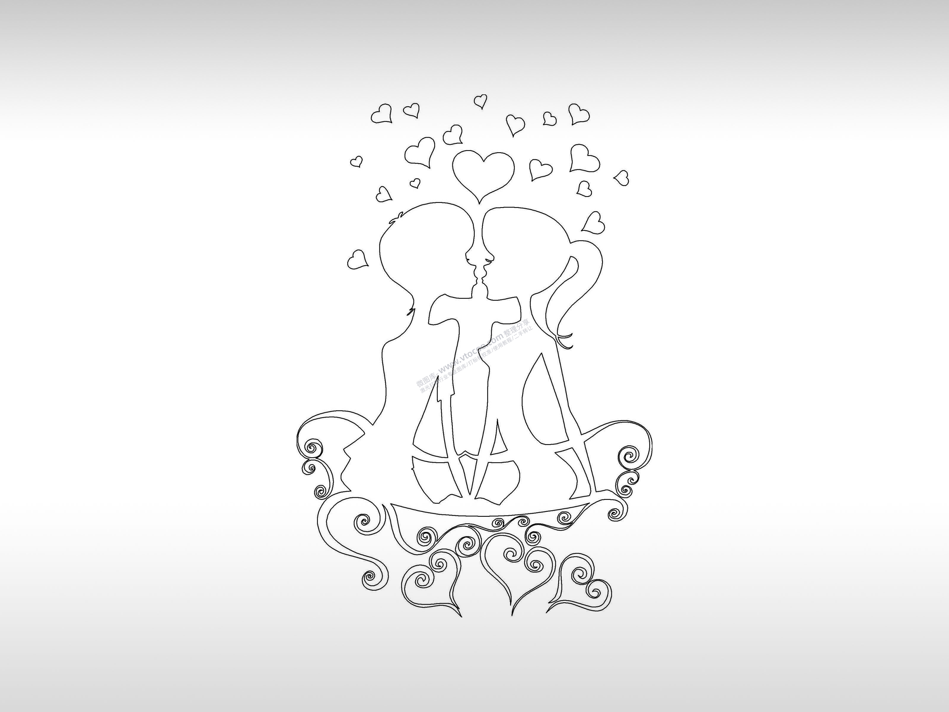 爱情手机壳个性卡通图案线描PLT格式激光打标文件通用矢量图