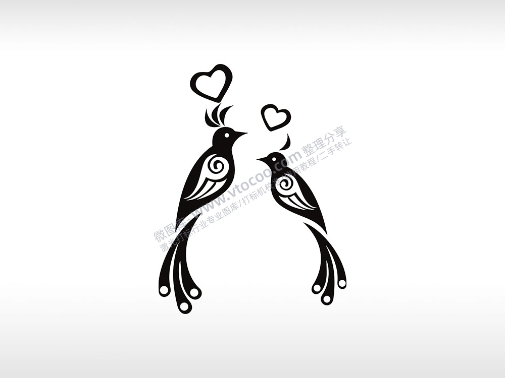 鸟爱情个性卡通图案线描PLT格式激光打标文件通用矢量图