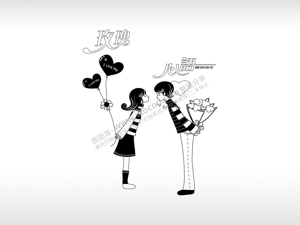 玫瑰心语爱情男女个性卡通图案线描PLT格式激光打标文件通用矢量图