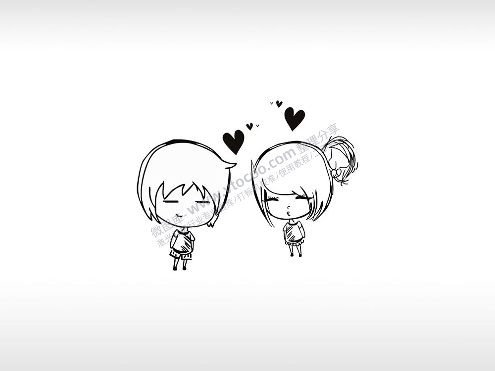 爱情男女个性卡通图案线描PLT格式激光打标文件通用矢量图