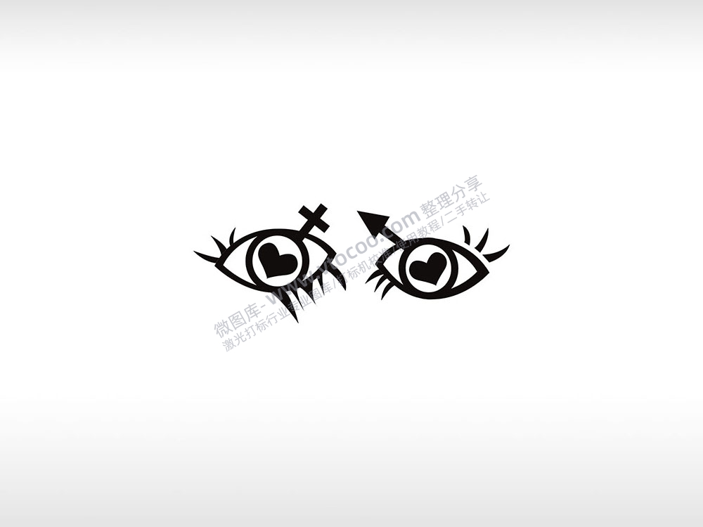 眼睛放爱个性卡通图案线描PLT格式激光打标文件通用矢量图