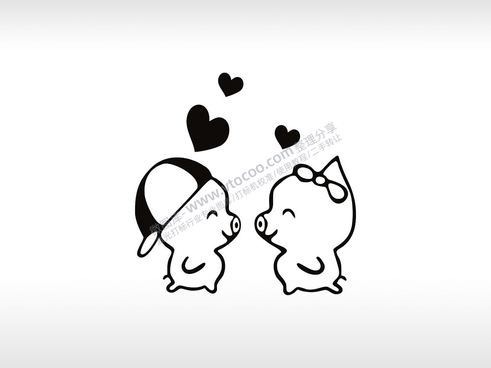 小猪爱情个性卡通图案线描PLT格式激光打标文件通用矢量图