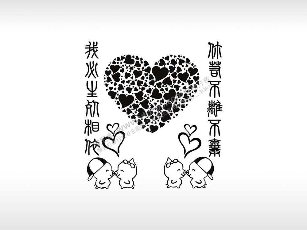 喜庆爱情个性卡通图案线描PLT格式激光打标文件通用矢量图