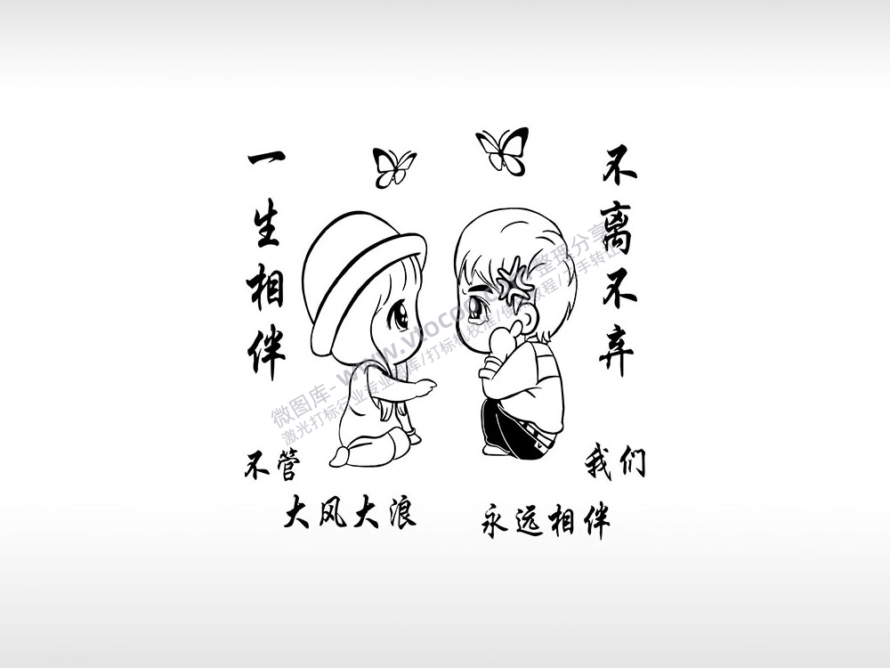 爱情男女誓言个性卡通图案线描PLT格式激光打标文件通用矢量图