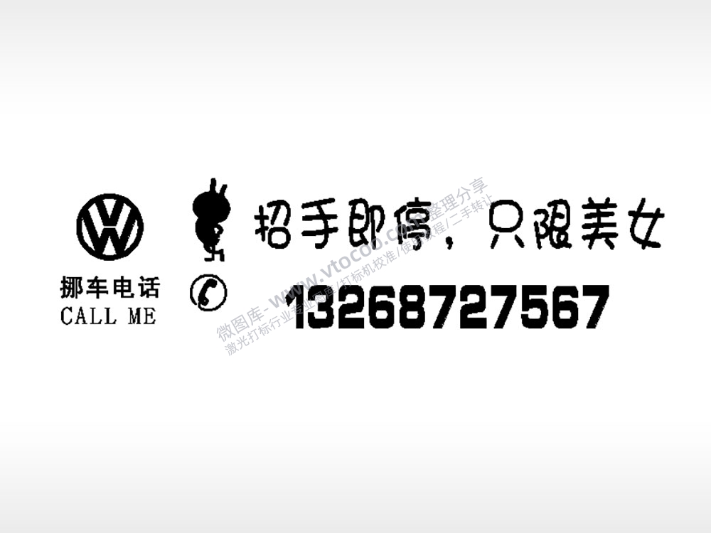 招手即停只限美女大众车标挪车电话EZD格式激光打标文件