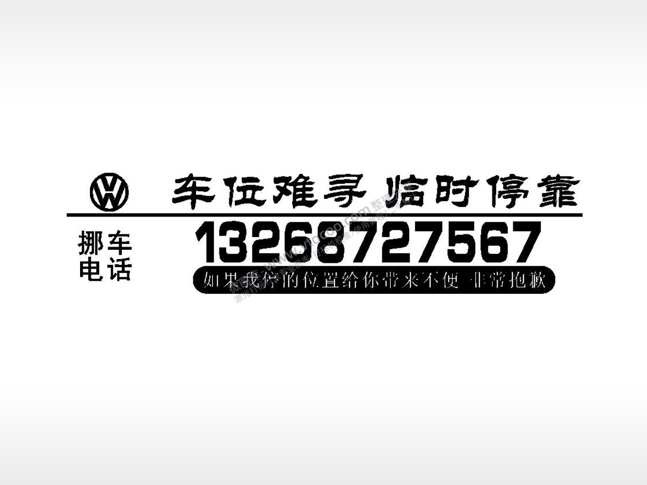 车位难寻临时停靠大众车标挪车电话EZD格式激光打标文件