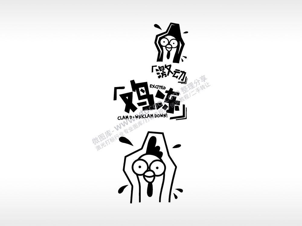 激动鸡冻搞笑整蛊卡通手机后壳PLT格式激光打标文件通用矢量图