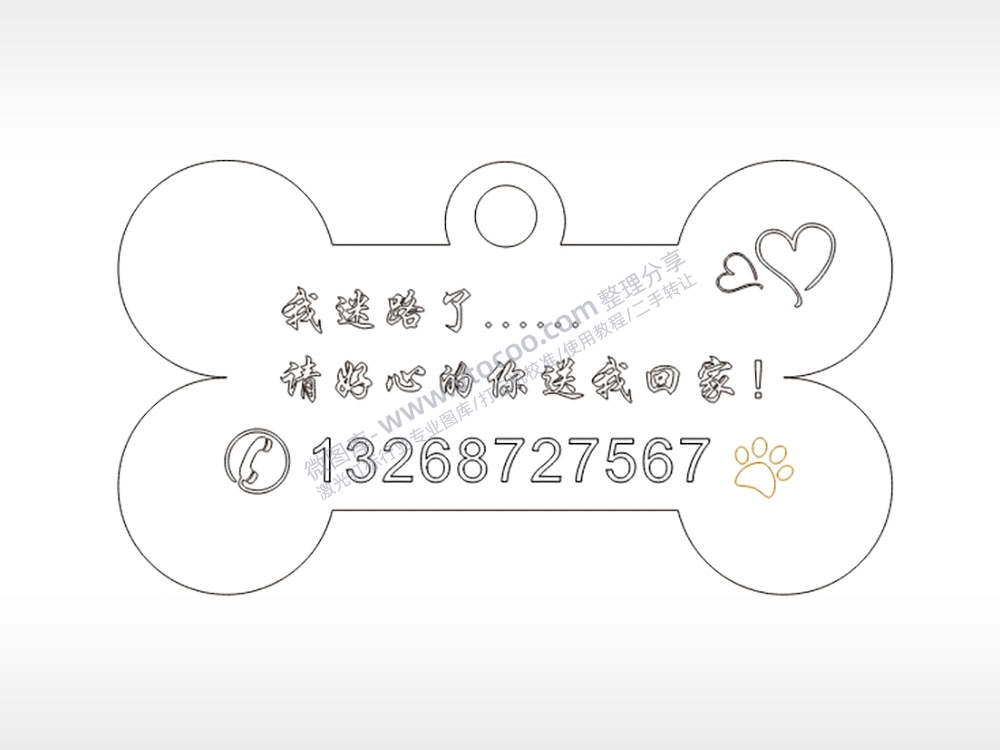 长方形背面4宠物狗牌文字电话号码PLT格式激光打标文件通用矢量图