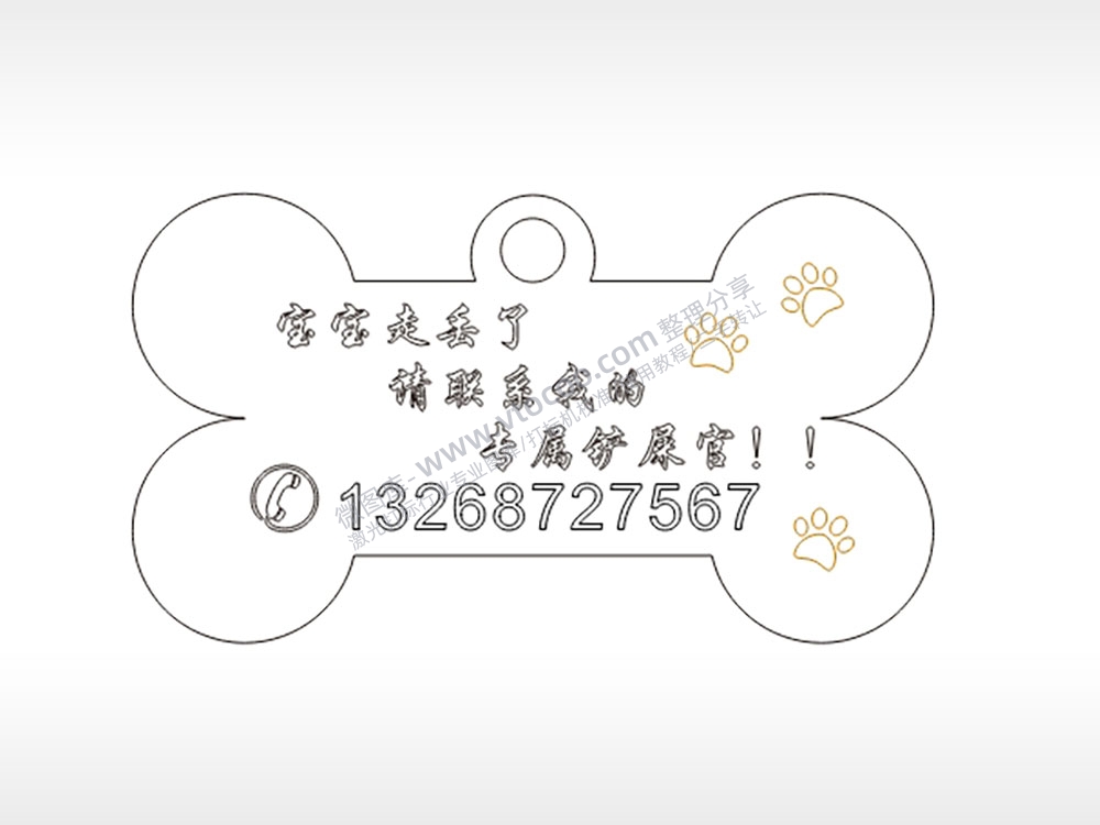 长方形背面6宠物狗牌文字电话号码PLT格式激光打标文件通用矢量图
