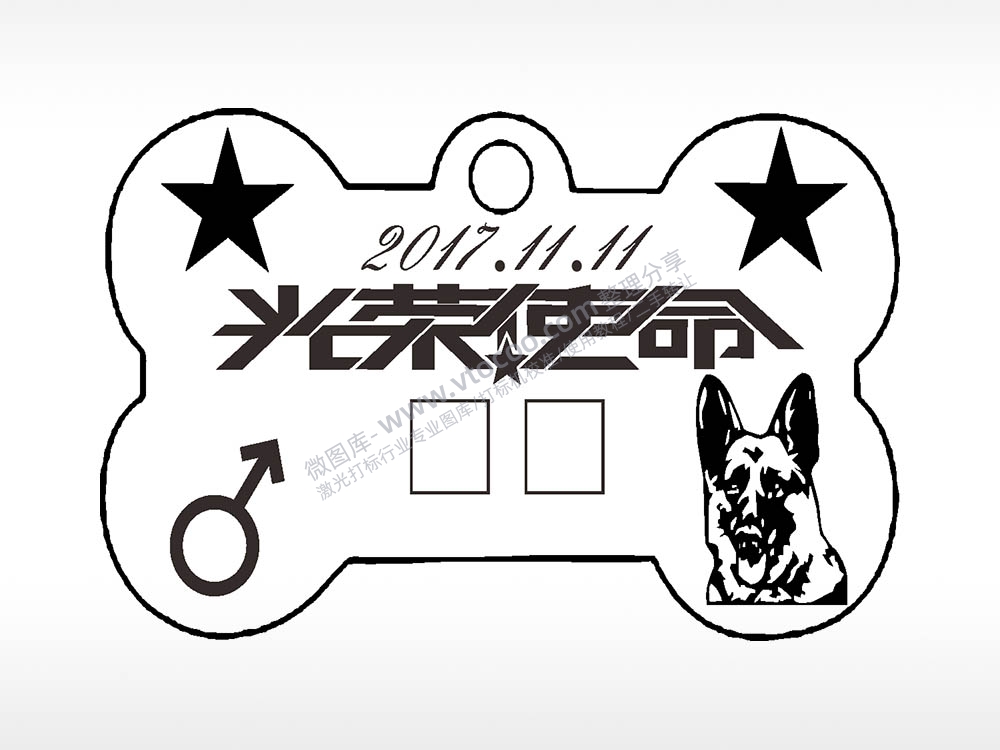 光荣使命警犬骨头形正面狗牌AI8.0格式激光打标文件通用矢量图