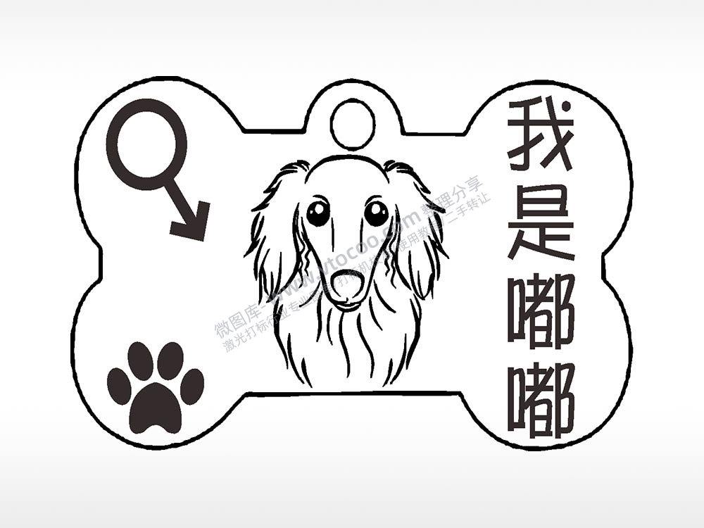 我是嘟嘟骨头形正面狗牌AI8.0格式激光打标文件通用矢量图