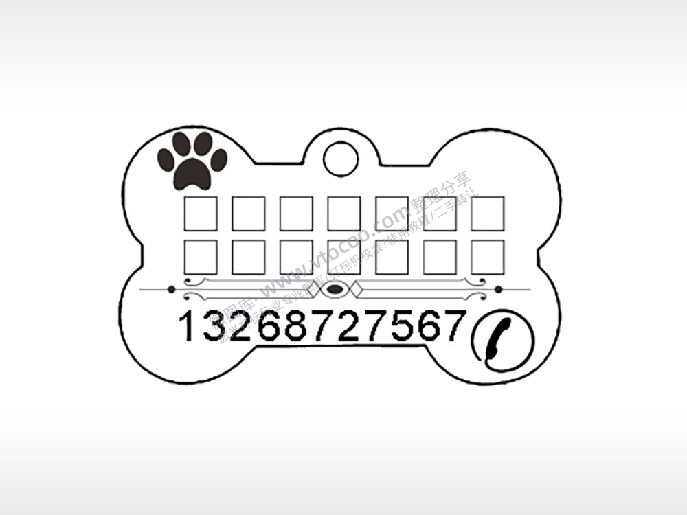 爪子电话标志骨头形背面狗牌AI8.0格式激光打标文件通用矢量图