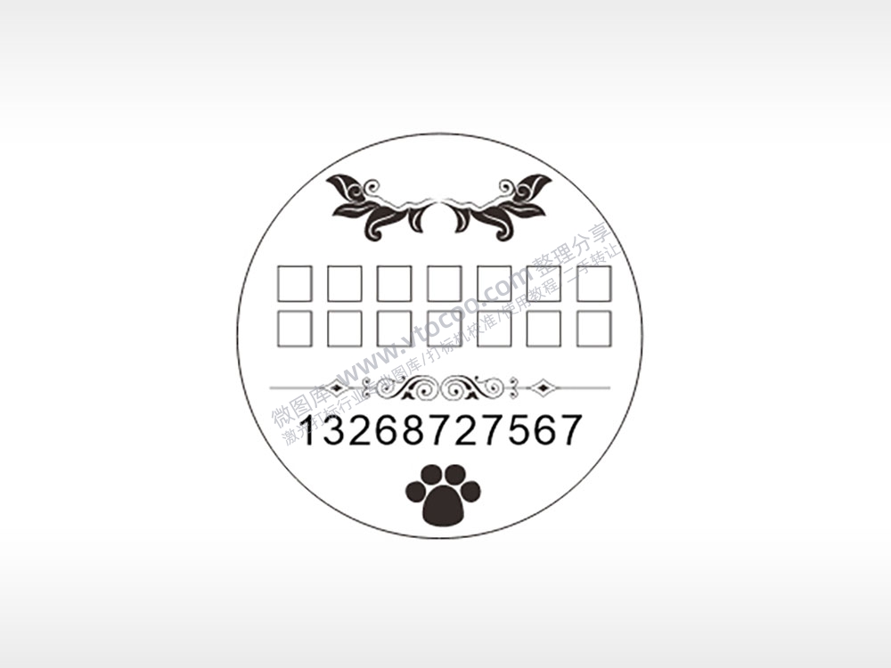 爪印电话号码圆形背面狗牌AI8.0格式激光打标文件通用矢量图