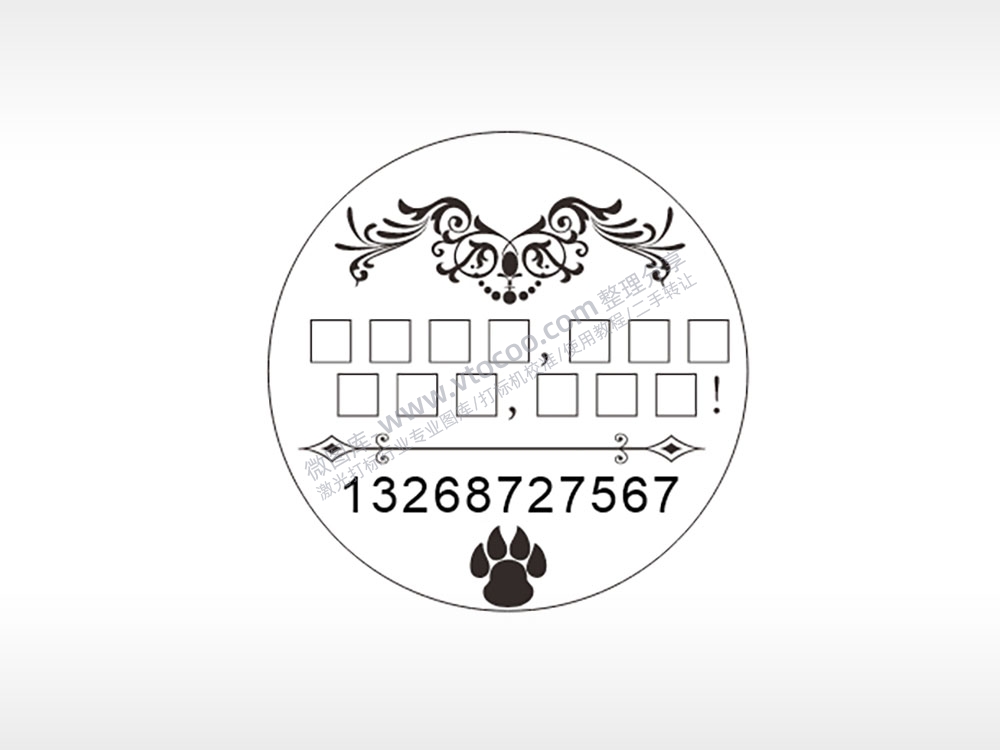 爪印电话号码圆形背面狗牌AI8.0格式激光打标文件通用矢量图