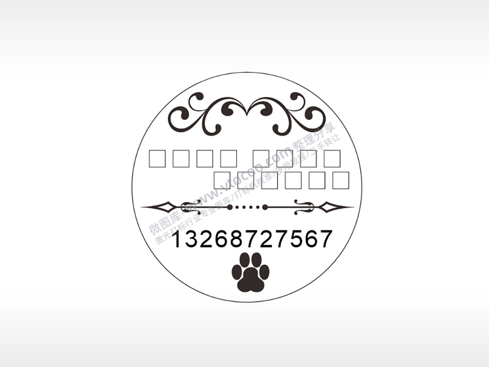 爪印电话号码圆形背面狗牌AI8.0格式激光打标文件通用矢量图