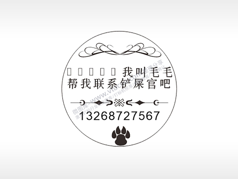 爪印电话号码圆形背面狗牌AI8.0格式激光打标文件通用矢量图