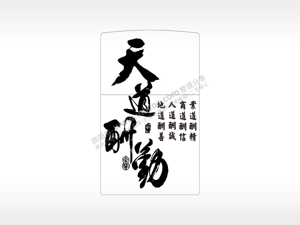 天道酬勤打火机图案AI8.0格式激光打标文件通用矢量图