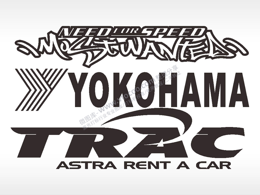 汽车贴花卡通名图精品车贴精选AI8.0格式激光打标文件通用矢量图