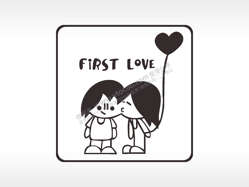 First love情侣方形挂件雕刻AI8.0格式激光打标文件通用矢量图