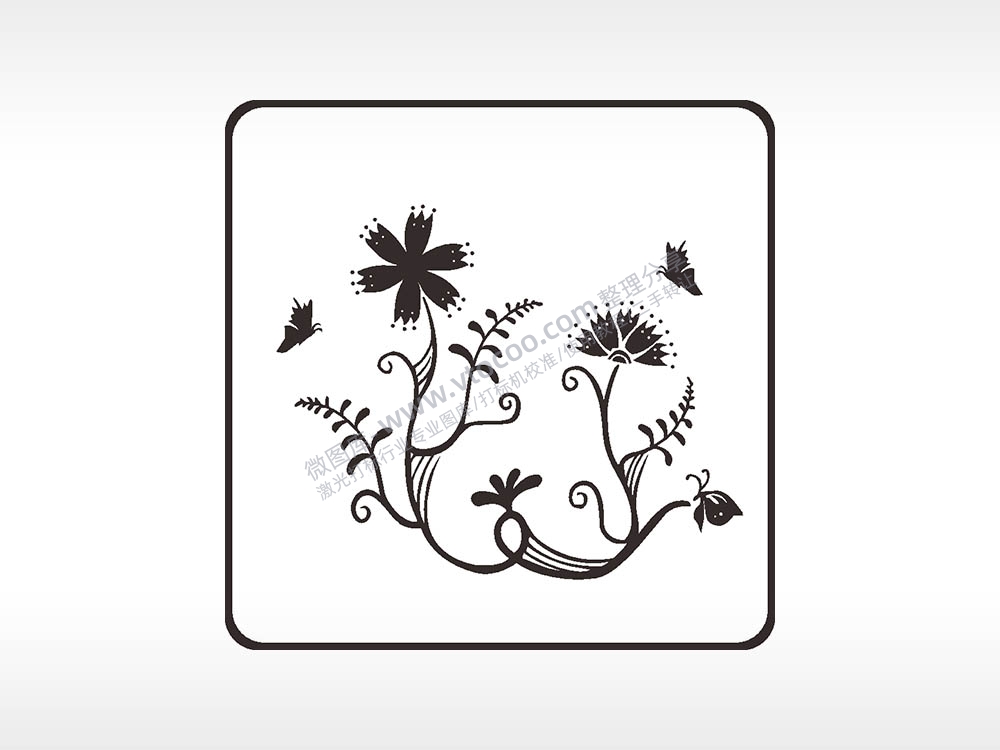 花朵蝴蝶植物方形挂件激光雕刻AI8.0格式激光打标文件通用矢量图