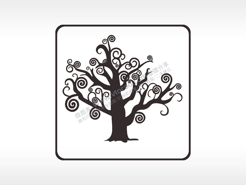 树剪影方形挂件激光雕刻AI8.0格式激光打标文件通用矢量图