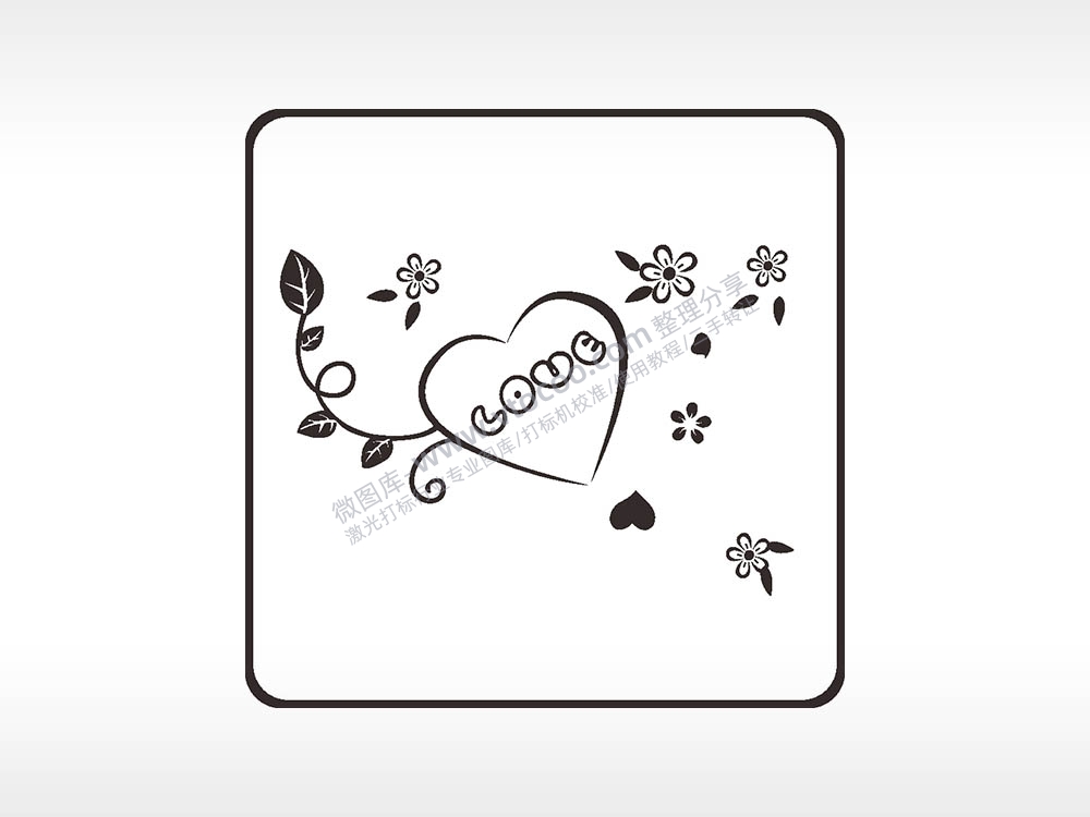 love花朵叶子方形挂件雕刻AI8.0格式激光打标文件通用矢量图