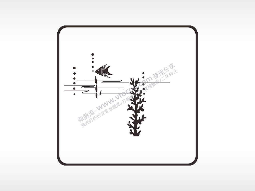 海洋海草鱼方形挂件激光雕刻AI8.0格式激光打标文件通用矢量图
