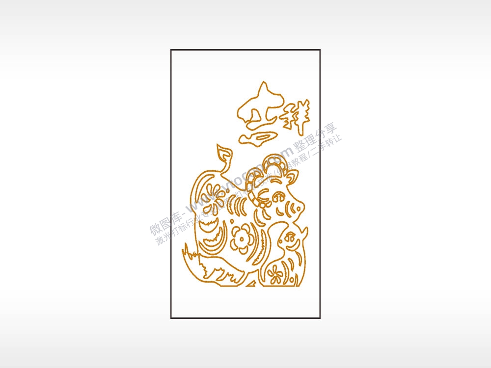 吉祥牛动物木牌打火机AI8.0格式激光打标文件通用矢量图