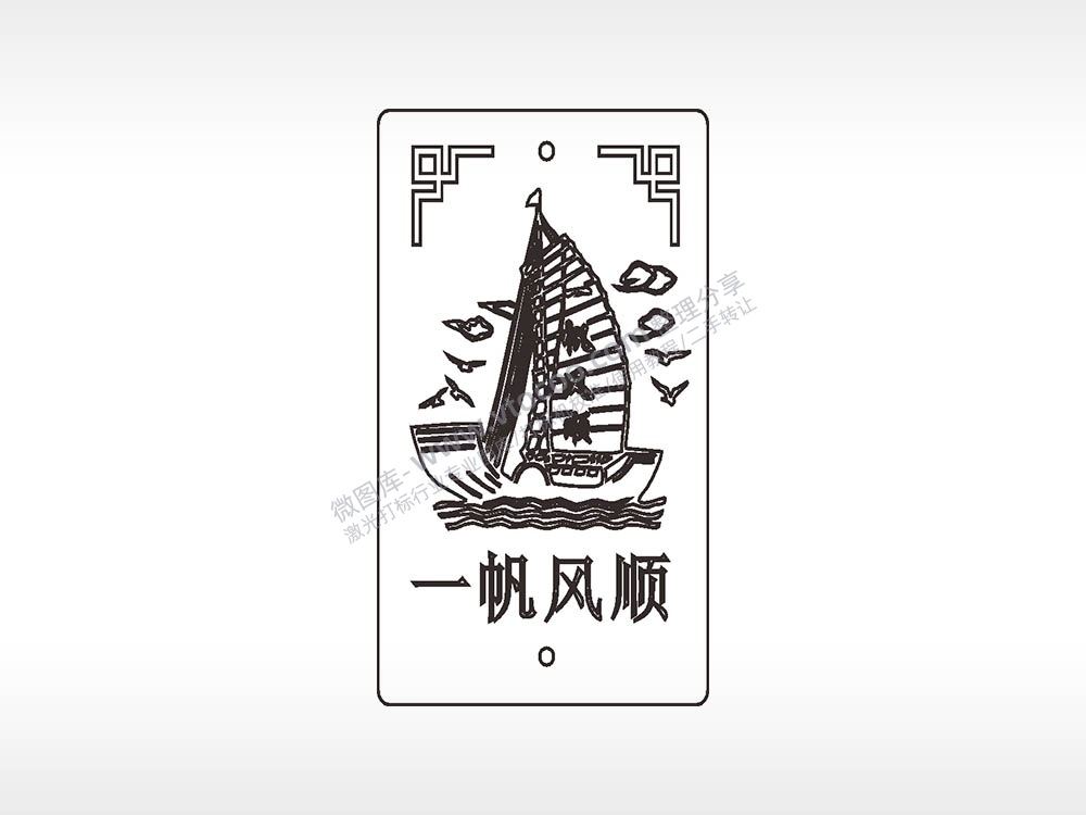 一帆风顺边框帆船木牌打火机AI8.0格式激光打标文件通用矢量图