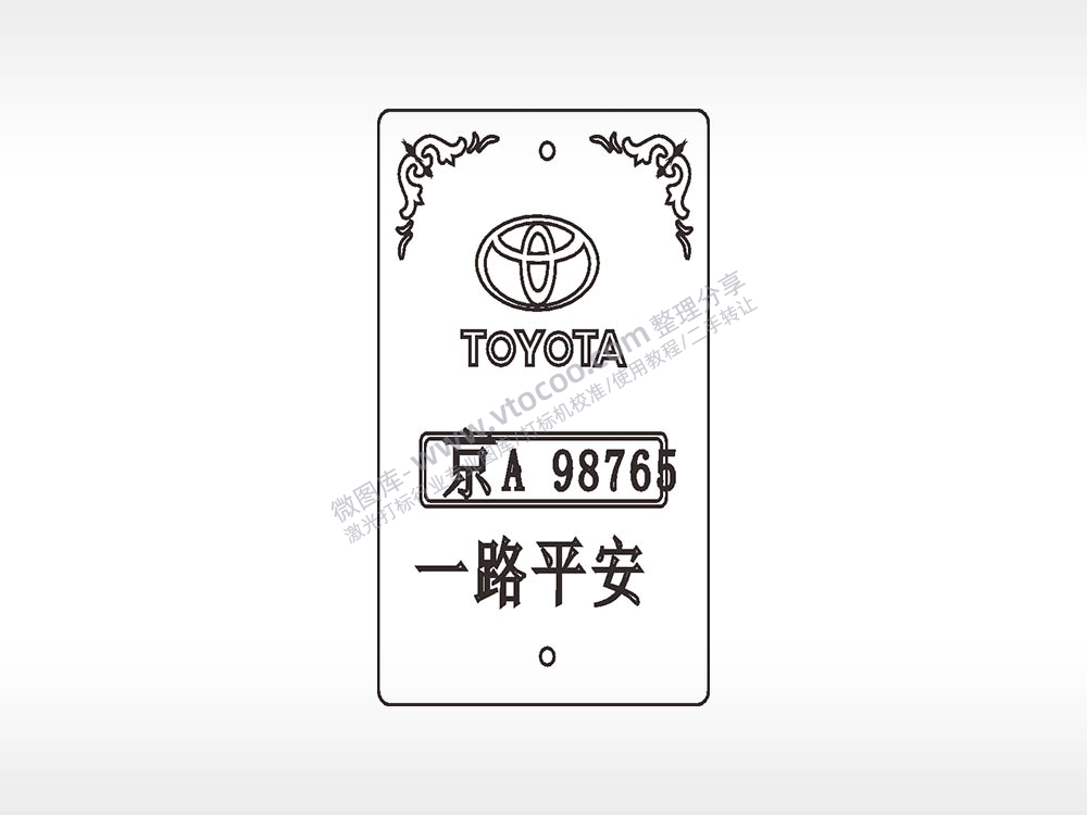 丰田一路平安边框木牌打火机AI8.0格式激光打标文件通用矢量图