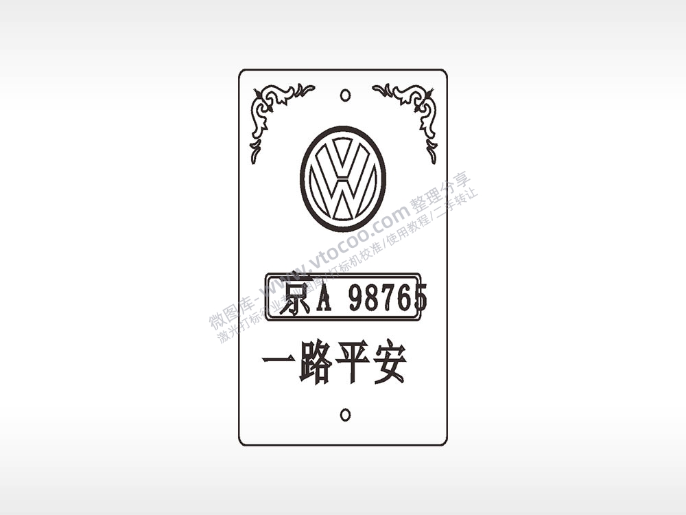 大众一路平安边框木牌打火机AI8.0格式激光打标文件通用矢量图