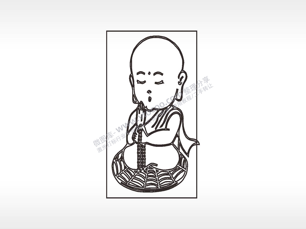 小和尚佛珠盘坐木牌打火机AI8.0格式激光打标文件通用矢量图