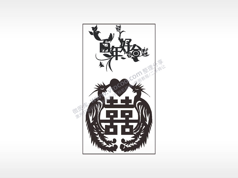 百年好合喜孔雀好运来木牌打火机AI8.0格式激光打标文件通用矢量图