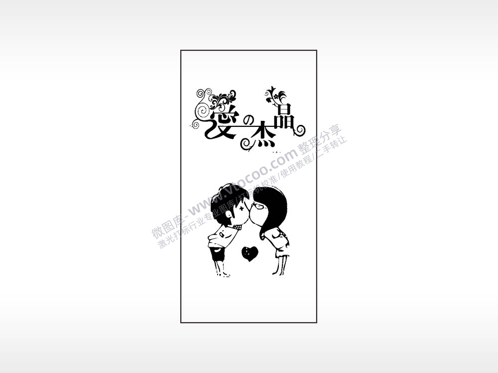爱杰晶亲嘴情侣木牌打火机AI8.0格式激光打标文件通用矢量图