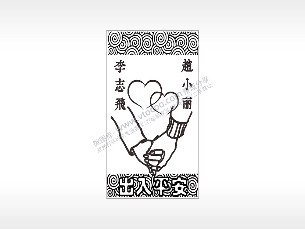 爱心牵手出入平安汽车挂件AI8.0格式激光打标文件通用矢量图