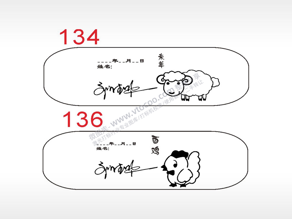 十二生肖羊鸡汽车挂件AI8.0格式激光打标文件通用矢量图