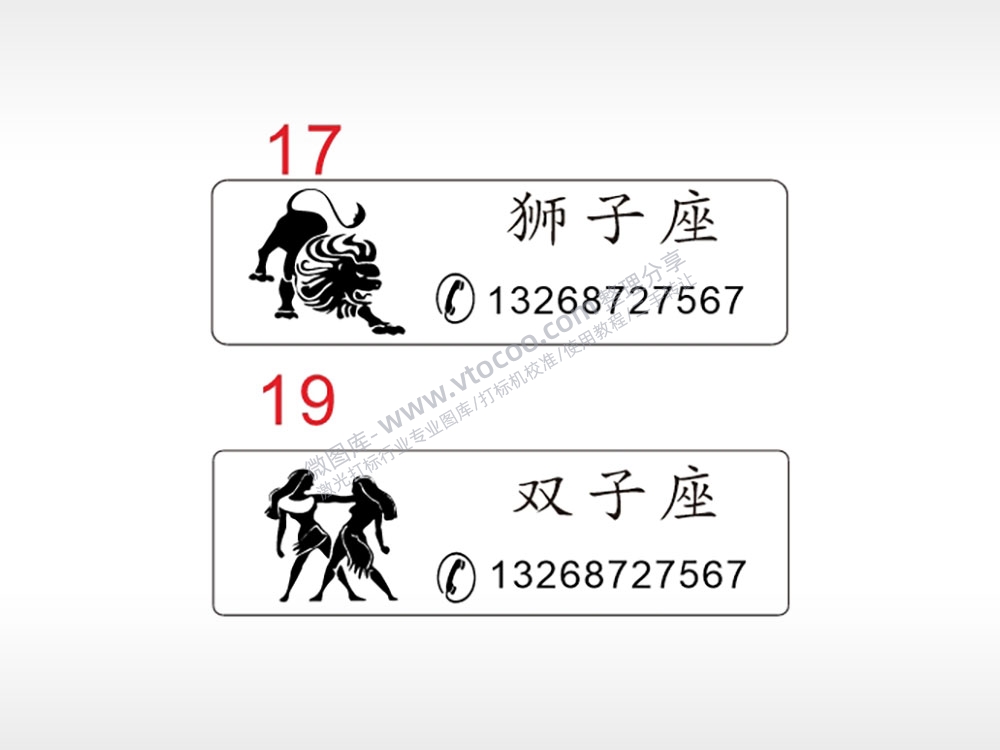 狮子座双子座手机号汽车挂件AI8.0格式激光打标文件通用矢量图