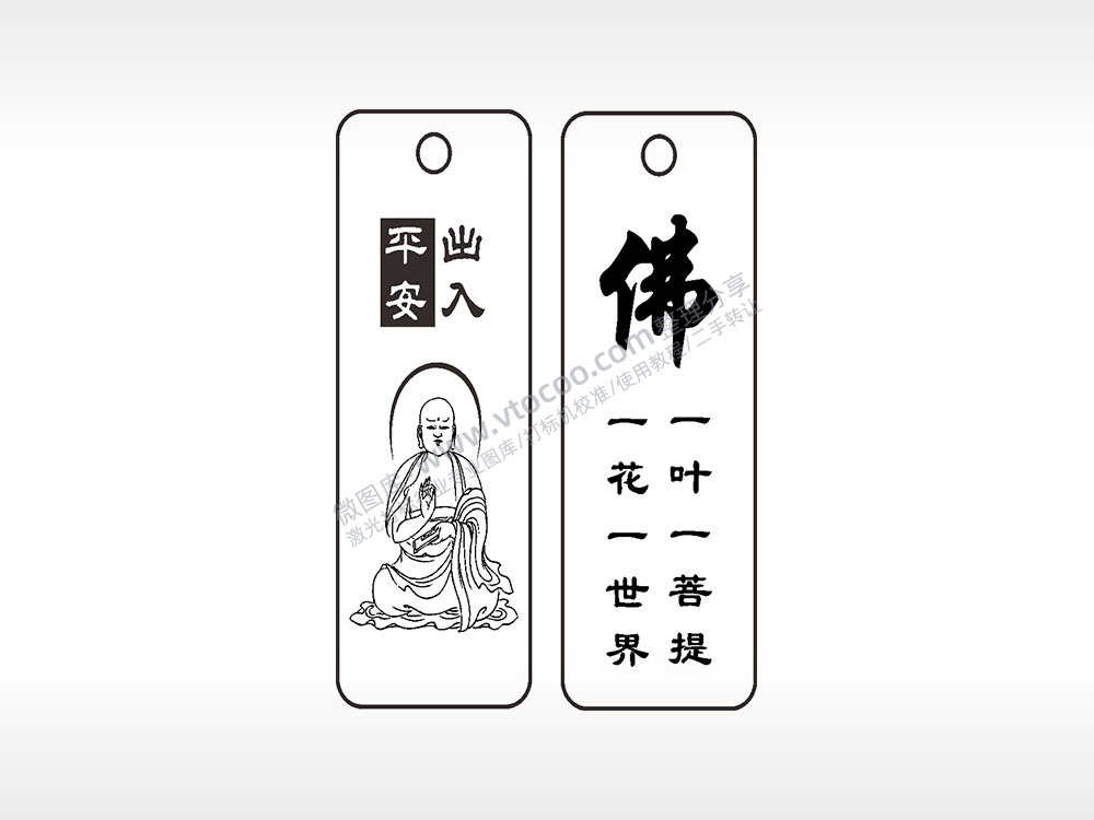 出入平安佛一花一叶车牌钥匙链AI8.0格式激光打标文件通用矢量图