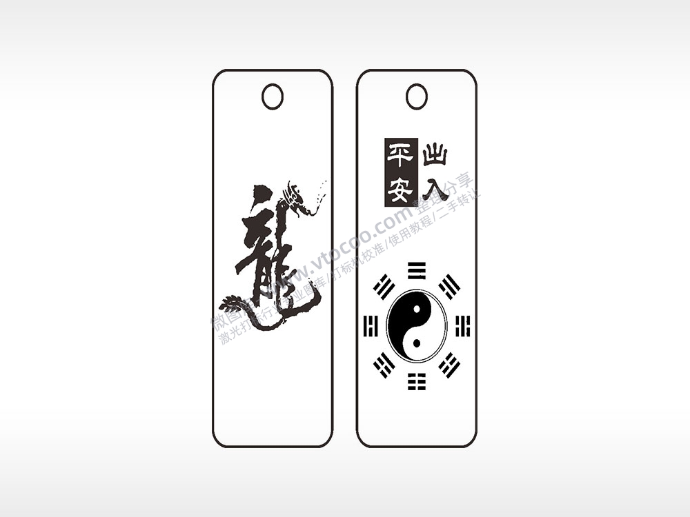 龙毛笔字出入平安八卦阴阳车牌钥匙链AI8.0格式激光打标文件通用矢量图