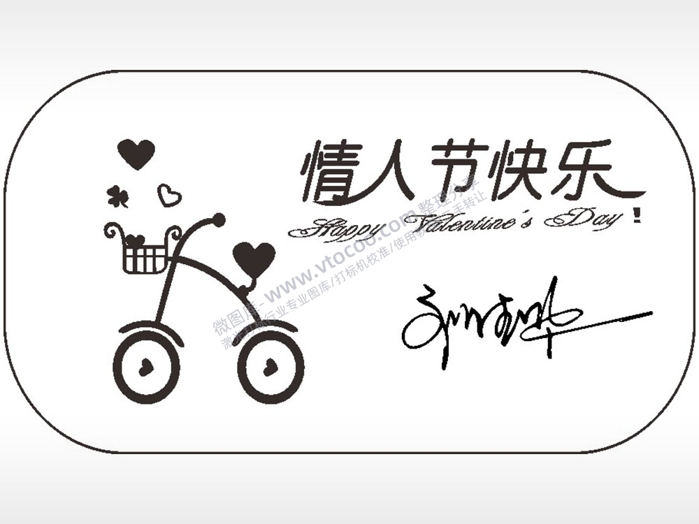 情人节快乐自行车车牌钥匙链AI8.0格式激光打标文件通用矢量图
