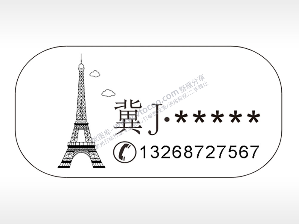 埃菲尔铁塔车牌号手机号车牌钥匙链AI8.0格式激光打标文件通用矢量图