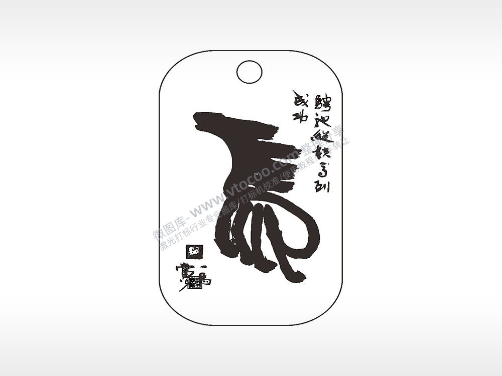 马到成功毛笔字水墨画挂坠项链AI8.0格式激光打标文件通用矢量图