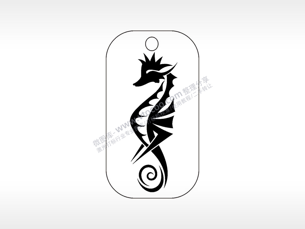 海马海洋动物雕刻挂坠项链AI8.0格式激光打标文件通用矢量图