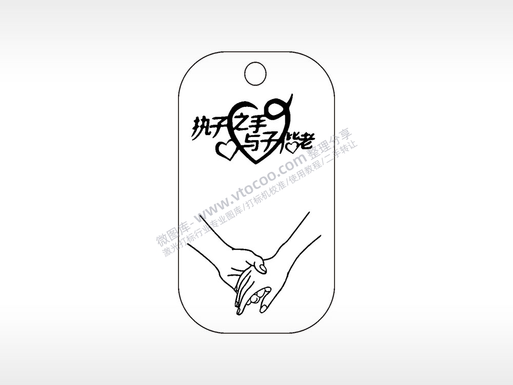 执子之手与子偕老牵手雕刻挂坠项链AI8.0格式激光打标文件通用矢量图