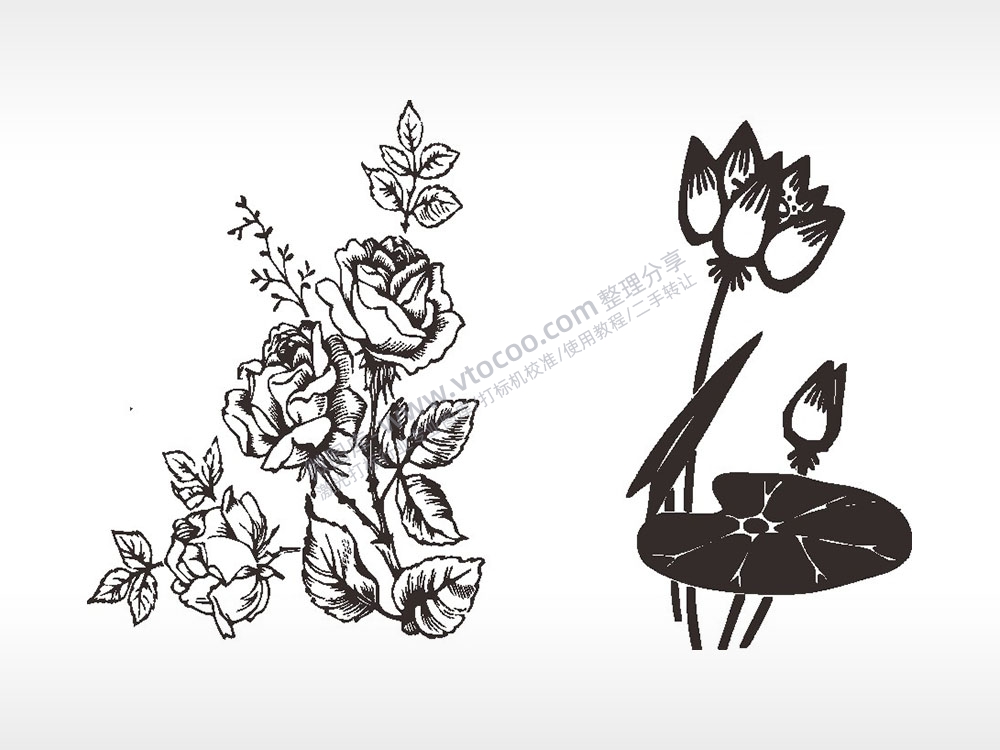 荷花玫瑰花植物梳子日常用品AI8.0格式激光打标文件通用矢量图