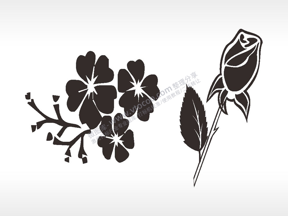 玫瑰花樱花梳子日常用品AI8.0格式激光打标文件通用矢量图