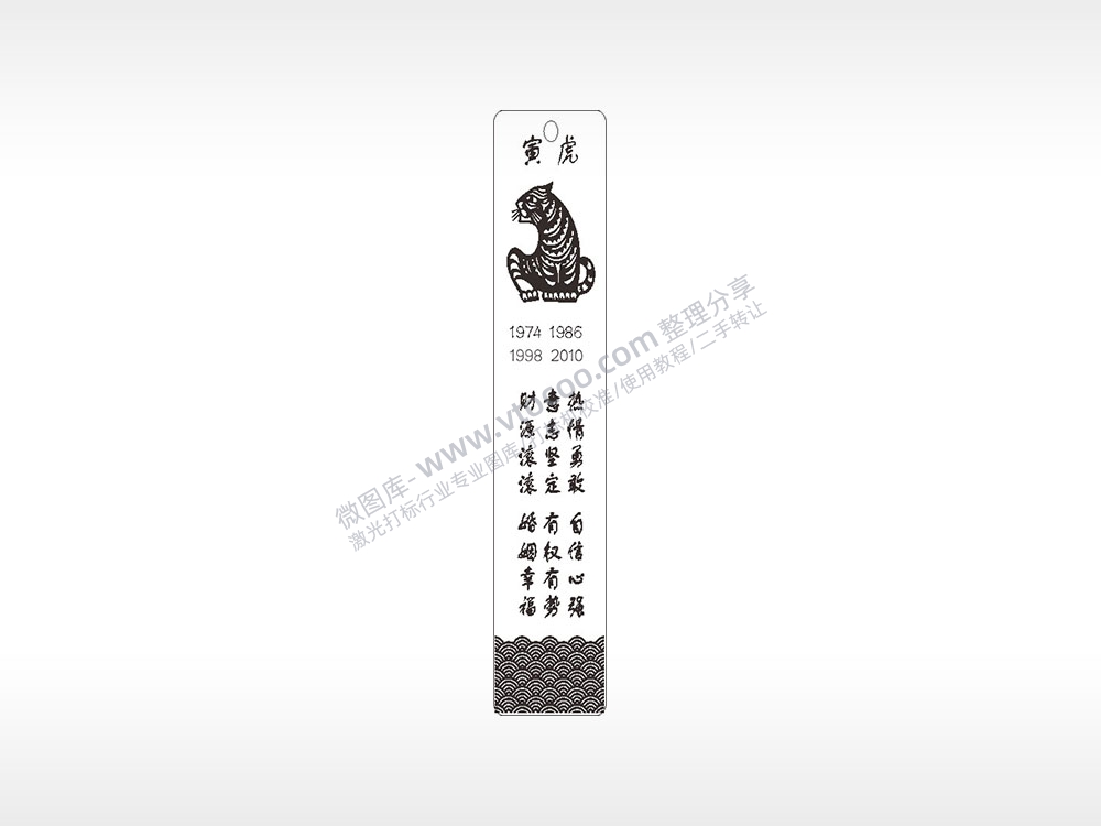 老虎日期文字水墨画书筒竹筒AI8.0格式激光打标文件通用矢量图