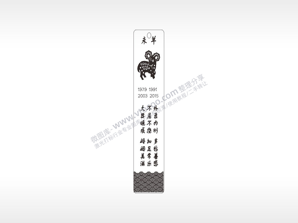 未羊生肖文字日期水墨画书筒竹筒AI8.0格式激光打标文件通用矢量图